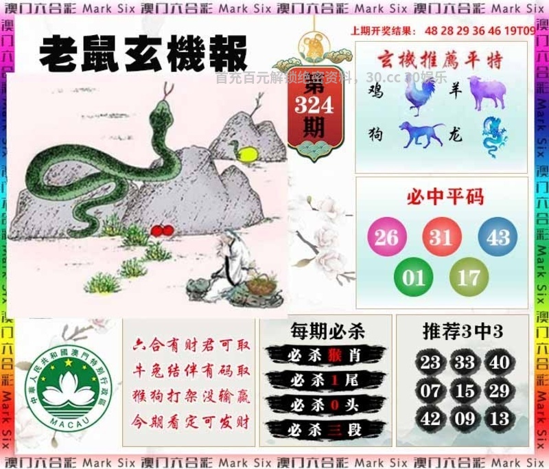 | 326期 | 羊 | 绿双 | 6尾 | 开發00 |